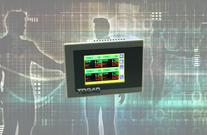 Order codes for the operator terminal with integrated PLC TD240-AD: Modbus Master/SlaveTD240-11AD: HMi 3.5" with soft-PLC + 16 Digital Inputs/Outputs + 4 Universal Analog Inputs + 4 Analog Outputs 0...10Volt + 2 RS232/RS485 serial portsGeneral features of the operator terminal with integrated PLCContainer: 140x100 (front) x 40 mm (-AD) or 65mm (-11AD)Power supply: 12...24Vac/Vdc ±15% 50/60 HzConsumption: 8WDisplay: 3.5" TFT LCD Display - 256 Colors, integrated Touch-screenEnvironmental conditions: Temperature 0-45 °C, humidity 35..95 uR%Material: Front: aluminum with polycarbonate cover; Container: chrome-plated steelWeight: Approx. 690gr -AD version, approx. 750gr -11AD versionProtection: IP54 (Front), IP20 (Container and Terminal blocks)Fast configuration: Memory Card SLOT (MMC) for graphics + ladder uploadExpansions: MCM260-1/2/3/4/5 modules or other Modbus devicesInputs of the operator terminal with integrated PLCAnalog: 4 Selectable for TC, K, J, S, R, T, E, PT100, PT1000, PT500, Ni100, NTC10K, (B 3435K), PTC1K (kty1000) 0/4..20 mA, 0/1..10 V (TD240-11AD version)Digital: 16 Selectable as inputs/outputs (TD240-11AD version)Encoders: Overlaid / Configurable on PLC digital inputs (TD240-11AD version)Fast input performance: 3 x 80 KHz (x1 - x2 - x4 counting mode) - 0...16777215 (24 Bit)OutputsDigital: 16 Selectable as 700mA static outputs or digital inputs (TD240-11AD version)Analog: 4 outputs 0...10Volt (TD240-11AD version)Serial ports: 2 Communication ports with RS232/RS485 interfaceSoftware featuresLogic programming: PLprog Software, Ladder diagrams; 10Kword VW variables, 800 markers (logic relays), 128 bistables, 128 16-bit timers, 64 up-down counters, mathematical and logic functions, rescale functions, bit contactGraphic interface programming: TDdesigner SoftwareCommunication protocols: Modbus RTU master/slave; Free-Port mode for Modem protocols or proprietary devicesMemory: 384Kbyte Flash for programming, 20Kbyte retained Ram (6 months), 62Kbyte EEpromClock: Real-Time clock with back-up batteryAnalog input regulation algorithms: P, PI, PID, PD