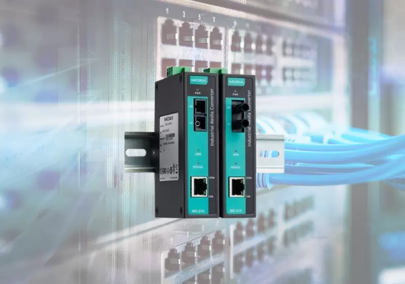 The IMC-21A industrial converters are entry-level 10/100BaseT(X)-to-100BaseFX converters designed to ensure reliable and stable operation in harsh industrial environments. The converters can operate at temperatures ranging from -40 to 75°C. The IMC-21A converters are easy to mount on a DIN rail or in distribution boxes.