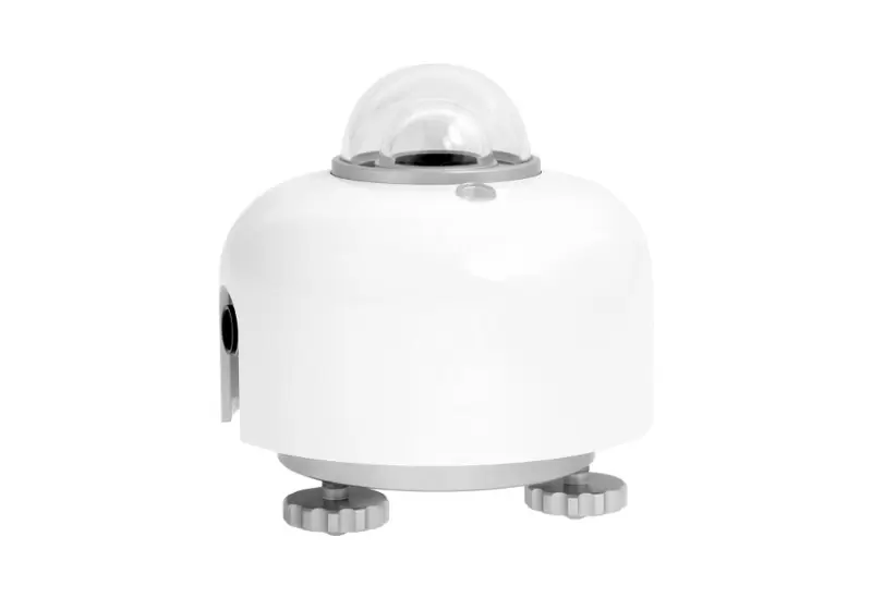 This sensor measures brightness in (de)lux(e). It determines the momentary degree of illumination intensity. The highly sensitive photodiode reacts quickly to prevailing circumstances, twilight, and spotlight. The device (16321) is particularly suitable for outdoor use and has a very robust housing and connection ports.