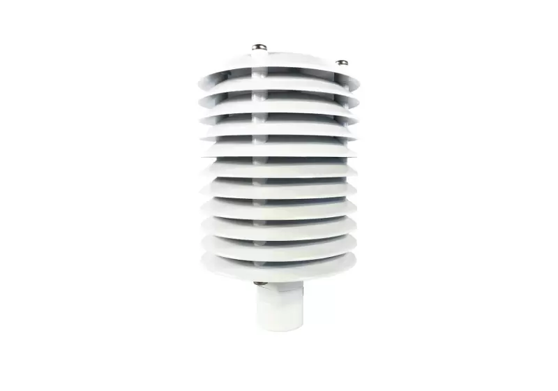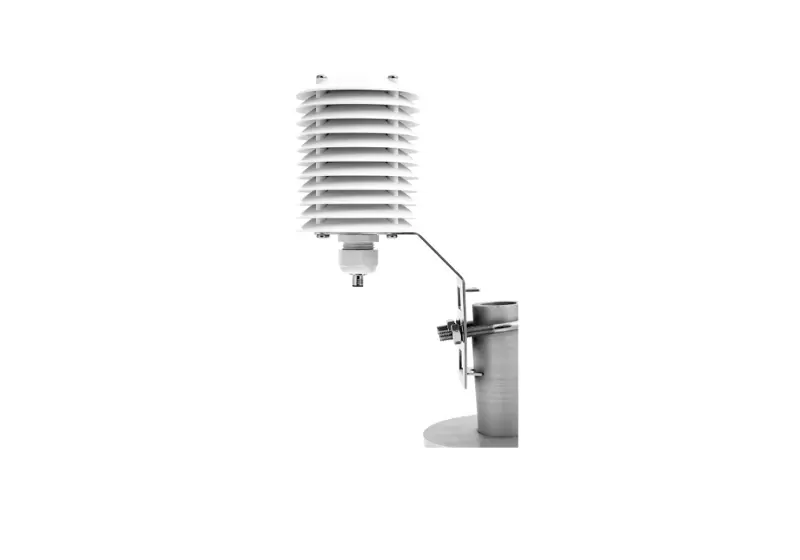 This artificially ventilated sensor shield is designed for universal use with instruments measuring relative humidity and air temperature. The ventilation system draws in ambient air and directs it over the sensor. This will prevent possible measurement errors caused by direct or reflected radiation, especially during calm conditions.